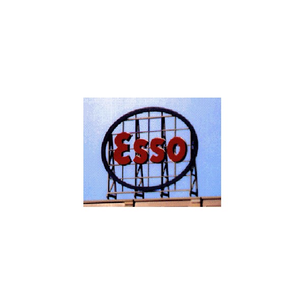 Esso 2-1/8 x 1-7/8" 5.3 x 4.7cm Great looking laser-cut wood "Cutout" Billboard Signs are perfect for rooftop or roadside and fit popular modeling eras. Each sign is designed to be assembled quickly and easily in layers, which