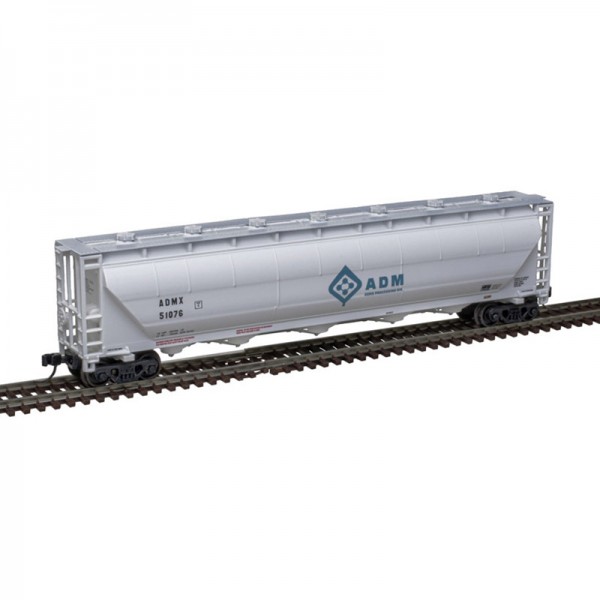The Atlas 5-bay PD5000 hopper is based on the original North American Car Company (NACC) design for a 5150 cu ft PD covered hopper, which was later manufactured as a 5125 cu ft model by Trinity Industries. These cars were mostly provided as lease cars, and as such, carried many colorful schemes and product logos during their lifetimes, however several major railroads such as Norfolk Southern purchased fleets as well.