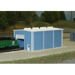Dimensions: 30 X 60 Scale FeetThis kit is designed to be built 24 scale feet high. Side walls have cut lines for optional door openings. End walls have enginehouse doors and small door provided. Kit includes doors, roof top vents, and down spouts.