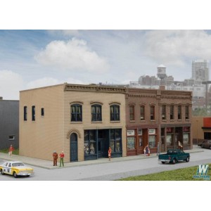 Merchant's Row III is part of the Walthers Cornerstone brick storefront building series patterned after those you'll find in towns across the continent. Featuring three brick businesses in one compact structure, this easy-to-build N Scale structure kit features: Three complete stores under one roof Fits 1880s to present Perfect for small town or big city Colorful printed signs for a variety of stores Printed interior detail sheet Two different front cornices Separate stairway and downspouts Molded in two colors Merchant's Row III