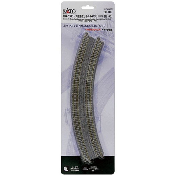381mm/414mm Radius 22.5º (15" - 16 3/8") The next stage in realistic snap track - "Superelevation" is the term used to describe track in which one rail is higher than the other; much like a banked curve on a freeway offramp